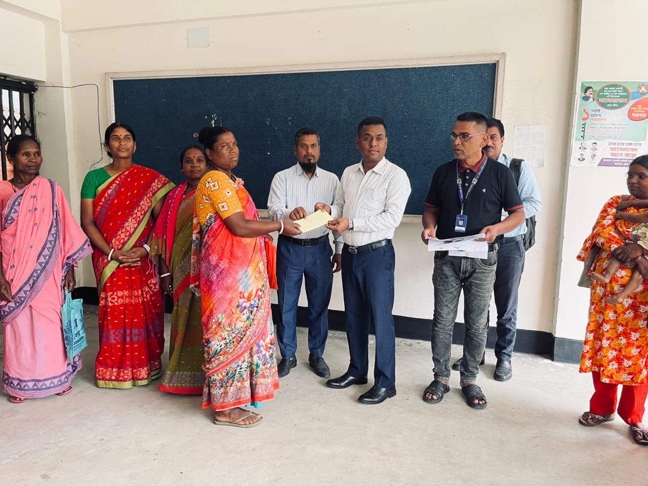ইএসডিও থ্রাইড প্রকল্পের আদিবাসীদের ছাগল পালন বাবদ নগদ অর্থ বিতরণ।
